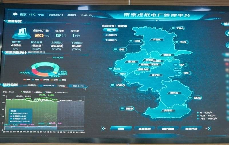 数据显示,截至目前,南京市虚拟电厂管理平台已接入运营商20家、聚合用户超4300户,申报调节能力突破30万千瓦,等效于一座大型绿色调峰电厂。随着2026年江苏电力现货市场进入15分钟动态电价新阶段,南京虚拟电厂正以轻资产模式,为电网保供与能源转型提供新路径。