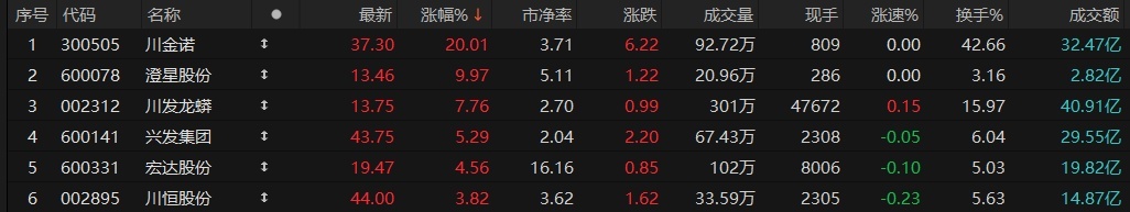 磷化工板块今日再度爆发,川金诺、澄星股份涨停。